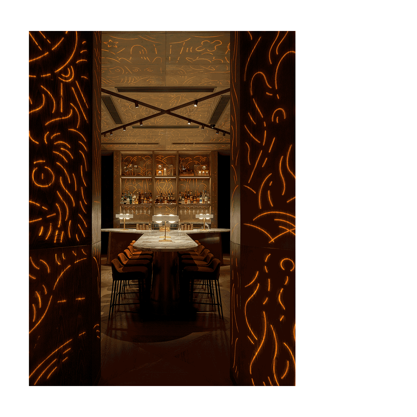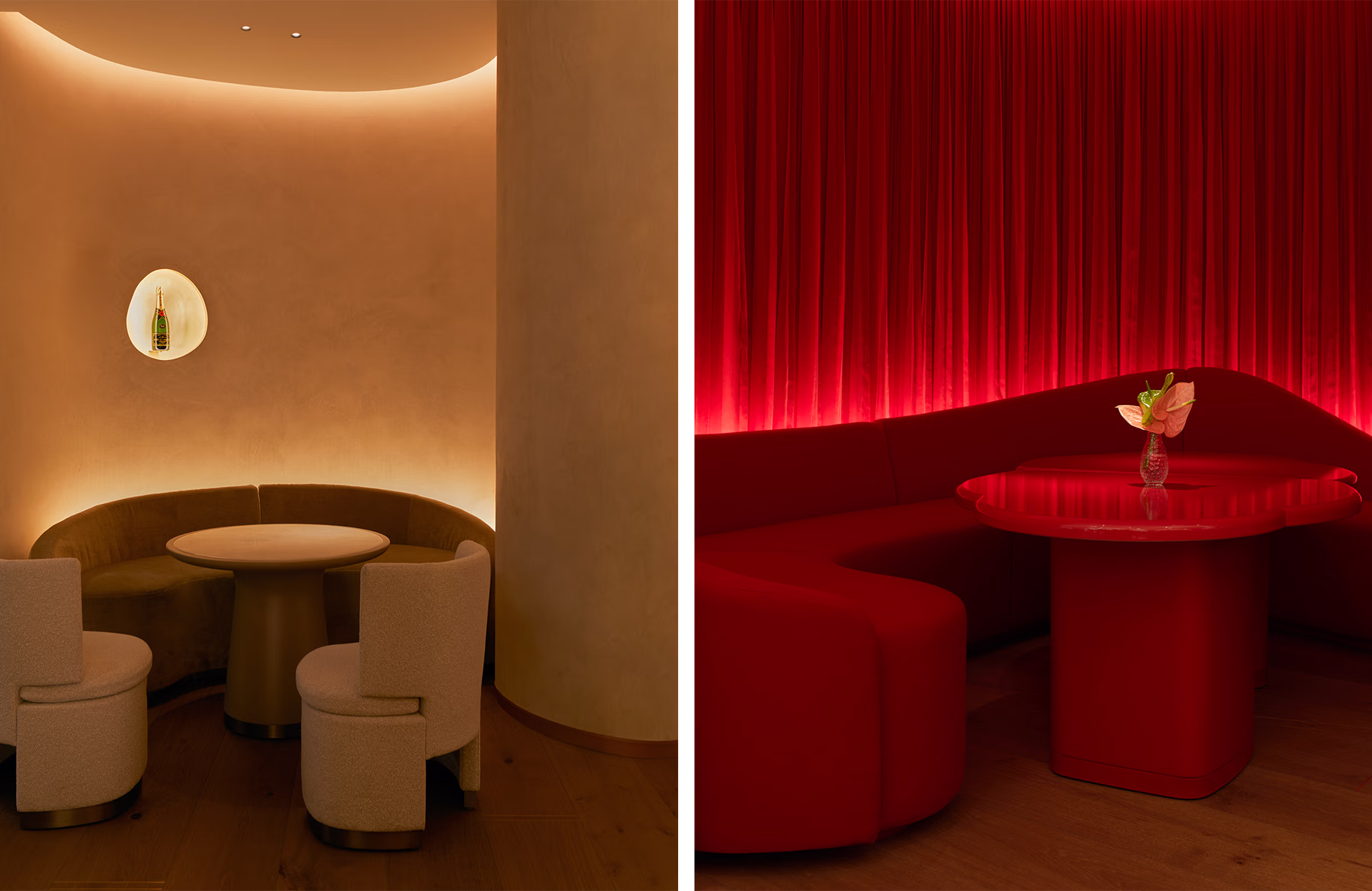 We shaped the interior around an emotional arc, moving from anticipation at entry to openness in the main space with intimate pockets throughout. Feeling-before-seeing guided the atmosphere, using warm reflective surfaces, softened metallics, and calibrated lighting to encourage connection. Rooted in a narrative of "everyday celebration", the design aligned every discipline from the start, integrating subtle cultural cues along with Moët’s heritage into a contemporary setting that celebrates both people and product.