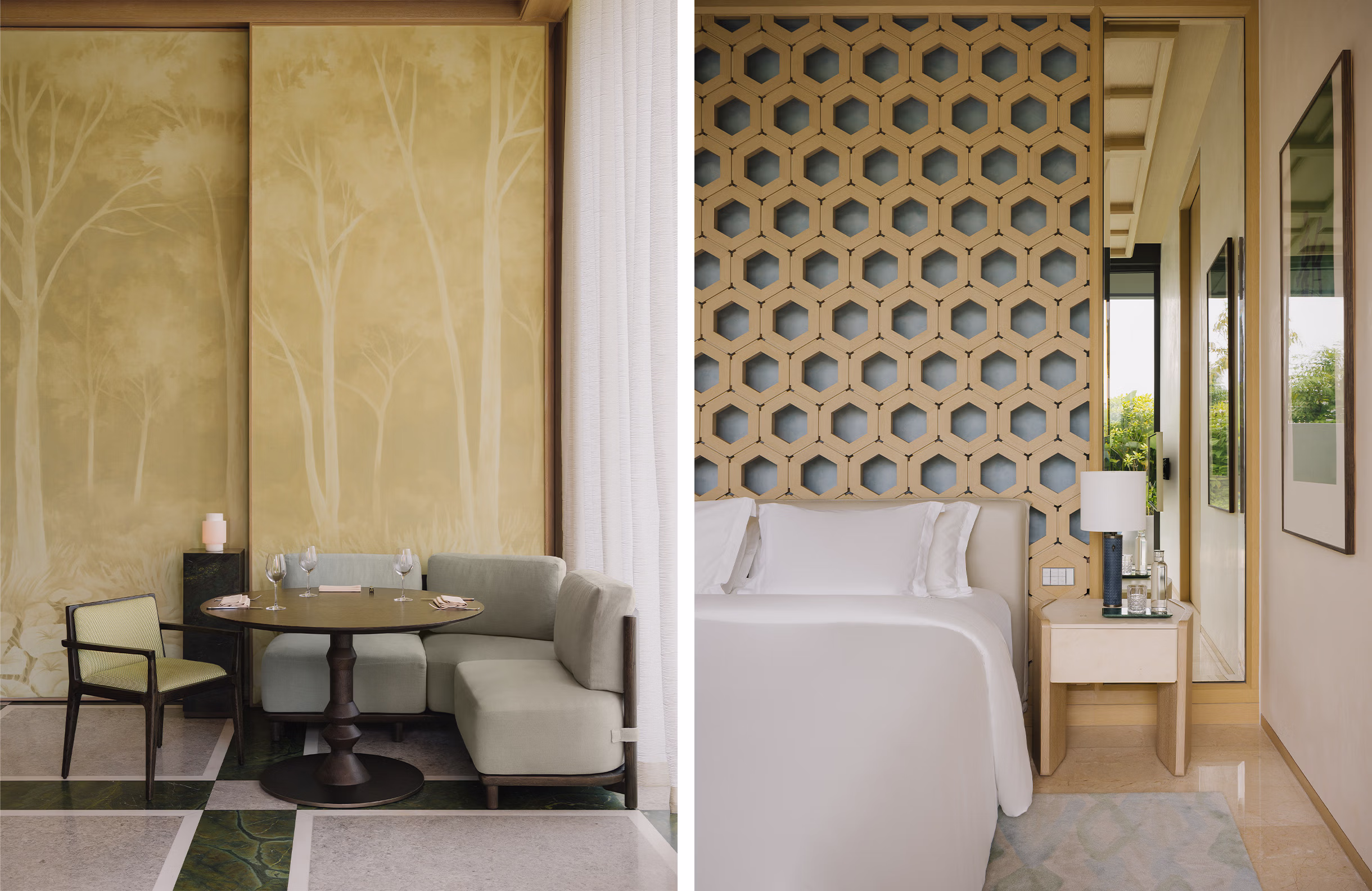 We planned the villas to follow Sentosa's topography to form a small village, reinterpreting the graciousness of the original Raffles through its interior experience rather than its aesthetics. A sequence of thresholds—garden, veranda, interior, retreat—echoes the old hotel’s sense of ease while adopting a contemporary residential language. Materials and details draw from Singapore’s ecology, using natural textures, soft transitions, and calibrated proportions to connect the interiors to the island; through this refined simplicity, the spaces bridge past and present, giving the new Raffles an identity that feels rooted in tradition yet entirely its own.